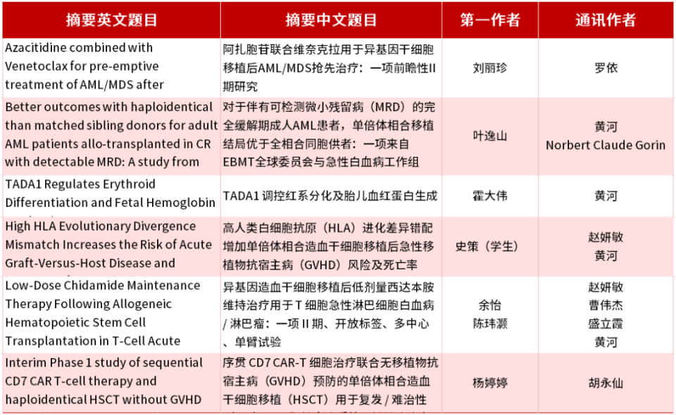 在近期举行的ASH会议上,共有8项来自本中心的研究成果以口头报告形式展示,其中5项聚焦于造血干细胞移植领域,构建了从移植前策略制定到复发难治阶段挽救治疗,再到移植后长期管理的全流程研究体系。