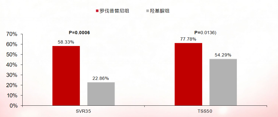 罗伐昔替尼与BCL-2抑制剂联合应用则是临床正在探索的另一研究方向。浙江大学医学院附属第一医院黄健教授开展的TQB3909联合JAK抑制剂用于中高危MF患者的Ib/II期多中心研究(NCT06245941)明确了罗伐昔替尼+BCL-2抑制剂在脾脏缩小、症状改善及贫血获益方面,较芦可替尼联合组更为突出,尤为惊喜的是罗伐昔替尼组SVR35率高达66.7%(vs.芦可替尼组20.0%)24。