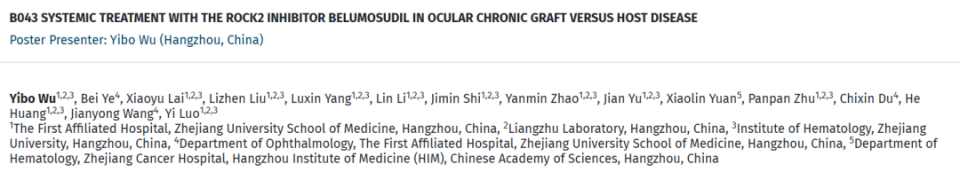 ROCK2抑制剂贝舒地尔系统性治疗眼部慢性移植物抗宿主病
