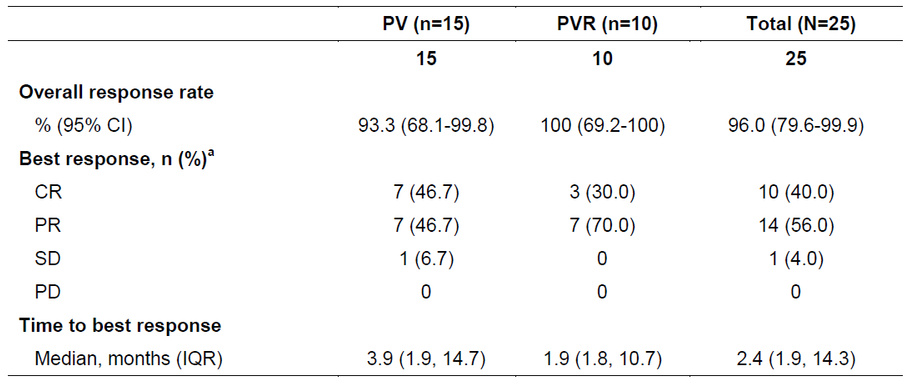 疗效数据:数据截至2023年5月5日,PV和PVR的中位随访时间分别为27.0个月和23.3个月;