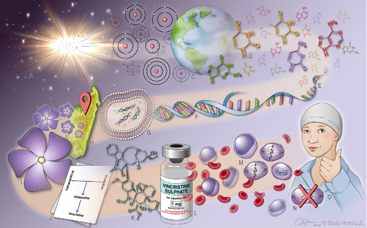 在马达加斯加岛上,一种迷人的花卉拯救了成千上万患有急性淋巴细胞白血病(ALL)的儿童。基因组的随机突变和变异促进了编码酶的基因进化,这些酶赋予了长春花一系列次生代谢产物,从而使其能在马达加斯加的生态系统中茁壮生存。在长春花合成的超过200种生物碱化合物中,长春新碱和长春花碱是两种最为人所知的化疗药物,它们被用于治疗包括ALL儿童在内的多种癌症患者。长春新碱和长春花碱的多步骤生物合成过程的复杂性,需要很长的时间才能完全破译,这强调了保护地球上丰富生物多样性的重要性,因为还有许多可能挽救生命的天然产物有待我们去发现。该篇综述介绍了白血病的早期治疗方法之一以及其存在的历史和进化过程。