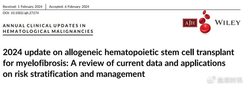 编者按:骨髓纤维化症(MF)总体上仍是一组不可治愈的疾病,异基因造血干细胞移植(allo-HSCT)在MF中的应用愈发广泛,疗效及安全性提升。近期,Haris Ali教授等在Am J Hematol期刊上发布了“allo-HSCT在MF治疗中的建议更新(2024版)”,为了深入了解该方面的内容,《肿瘤瞭望-血液时讯》特编译整理该文,供读者参考。