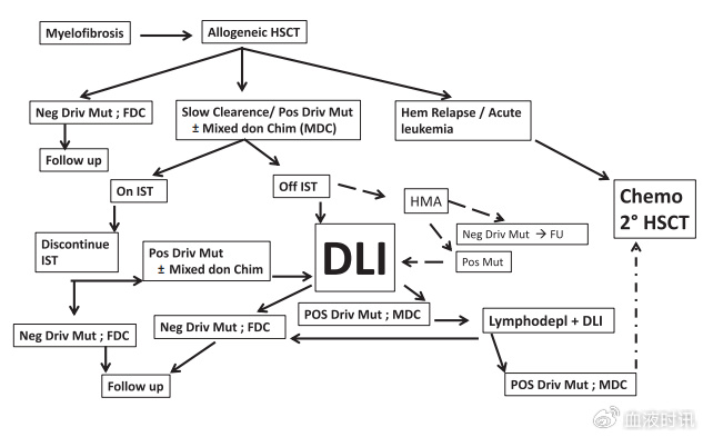 较多患者在allo-HSCT治疗后驱动基因突变消失和完全供者嵌合状态(FDC),此时可进入随访观察状态。
