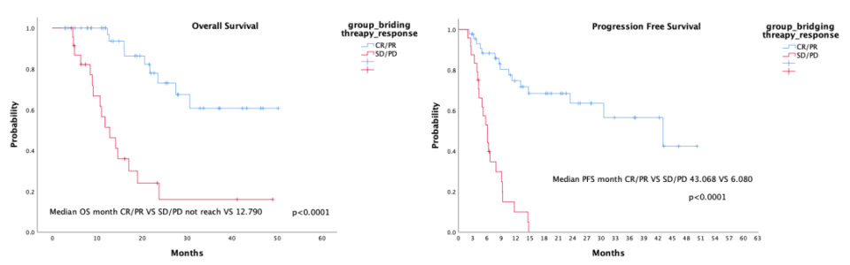 图1. 桥接治疗有效组和无效组的OS和PFS
