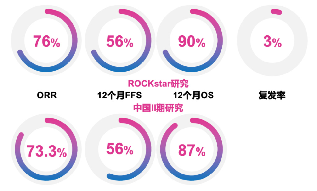 随机、开放标签、国际多中心关键性II期研究ROCKstar20 ,共纳入132例接受过2-5线系统性治疗后出现持续活动性cGVHD表现的患者,98%为中重度,伴有多器官受累和纤维化表现,中位随访14个月。贝舒地尔中国II期研究(n=20)22的重度患者占比高达66.7%,中位随访12.9个月。两项研究均证实,贝舒地尔改善缓解和生存,可减少免疫抑制剂使用,可进一步助益GVL效应的保留(图4、5)。