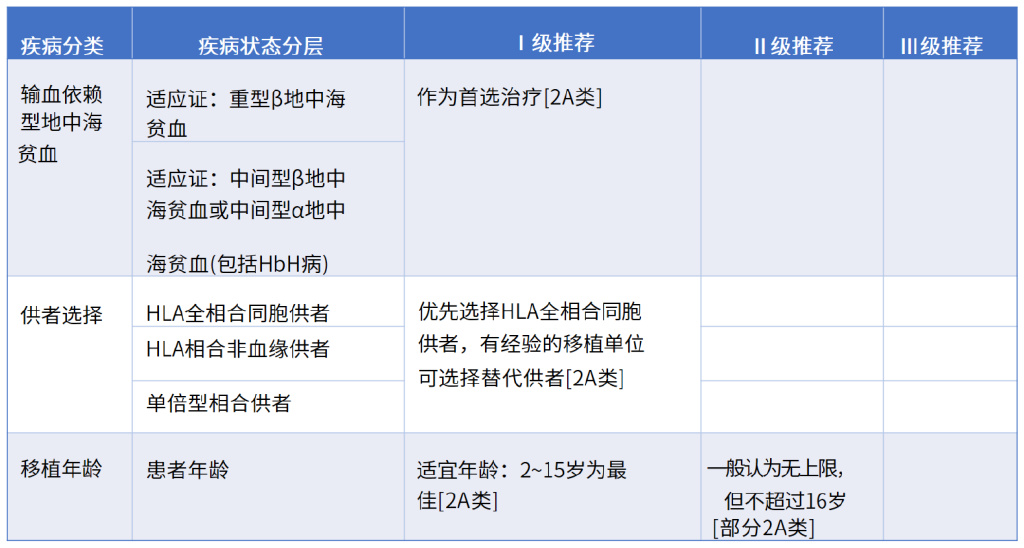 新增“异基因造血干细胞移植治疗地中海贫血的适应证”,具体见下表。