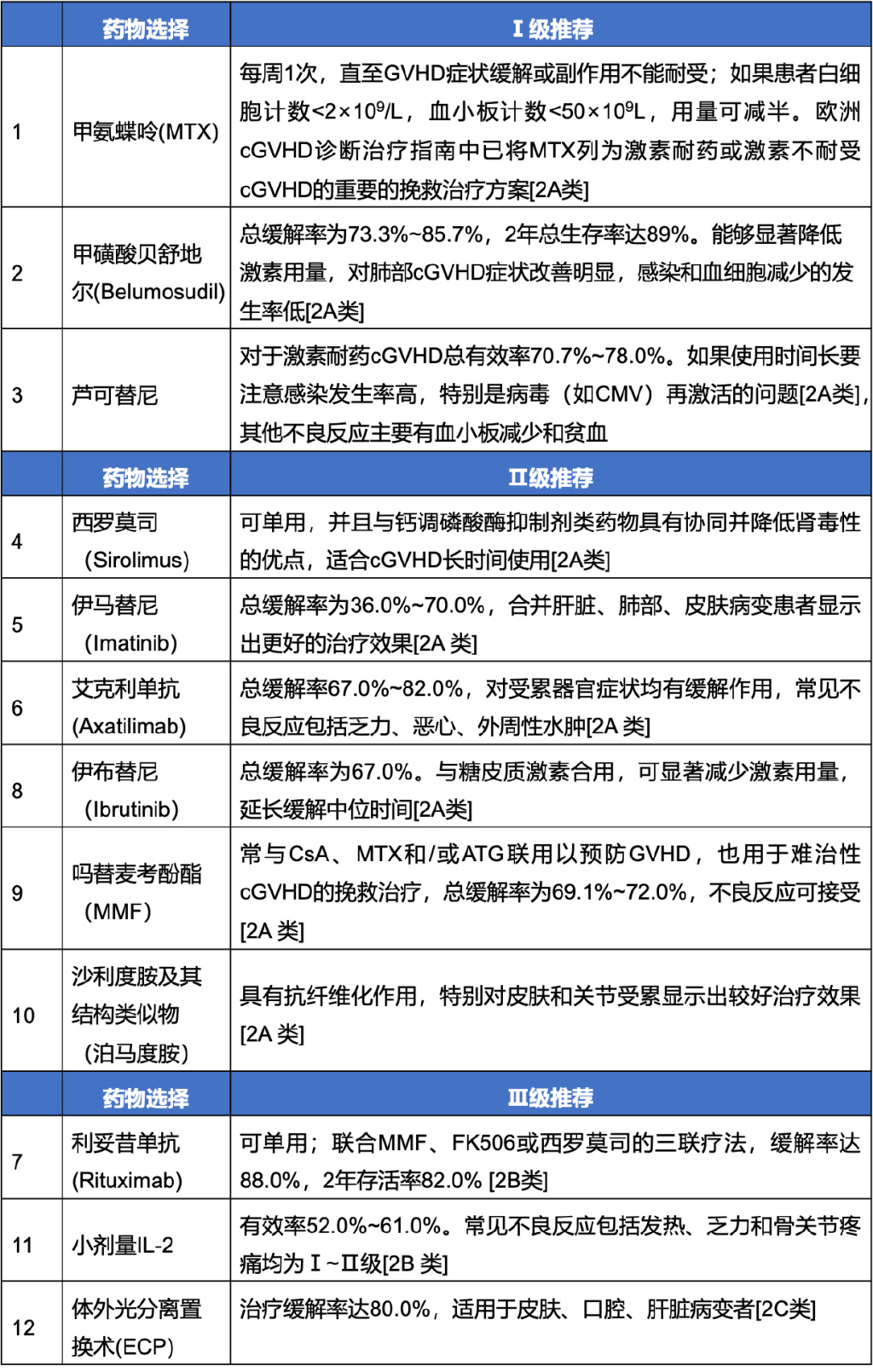 表1. 《CSCO 造血干细胞移植治疗血液系统疾病指南(2025版) 》对于cGVHD的二线治疗推荐