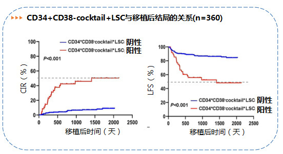 图2. 基于LSC的MRD检测可更好预测AML患者移植后复发及预后