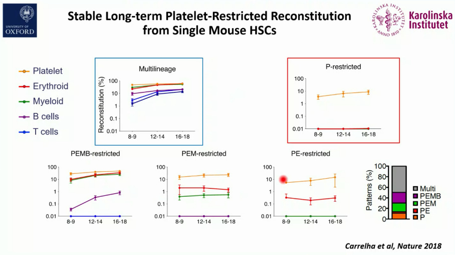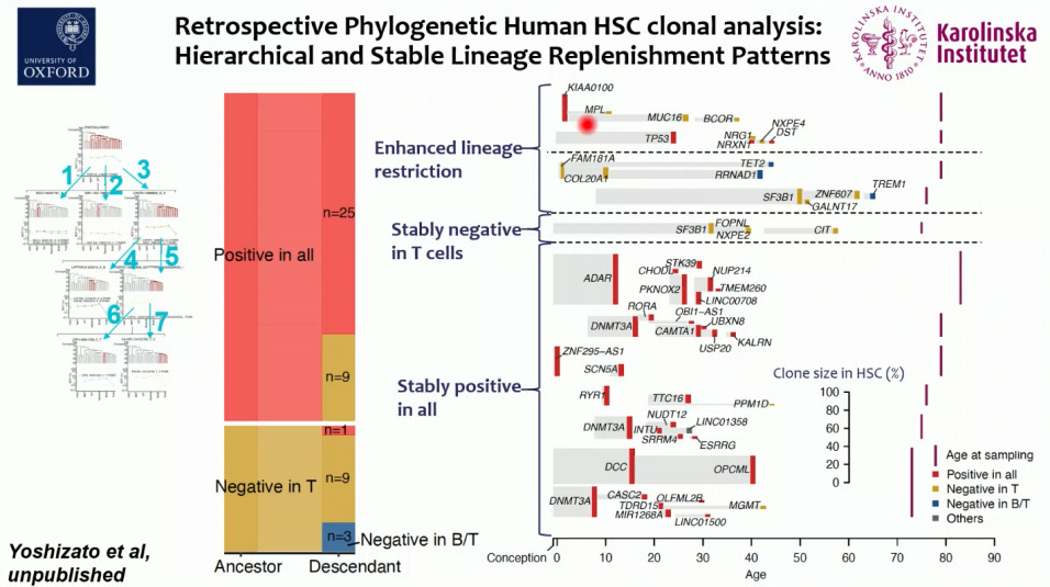 通过对老年健康供者的骨髓样本进行深度测序和系统发育树分析,研究团队能够追溯克隆的起源和演化历史。Jacobsen教授展示的数据令人信服:“我们发现,在人类老年个体中,同样存在着与小鼠模型中高度一致的干细胞谱系限制模式,包括多能型、缺失T细胞型以及缺失B/T细胞型。”