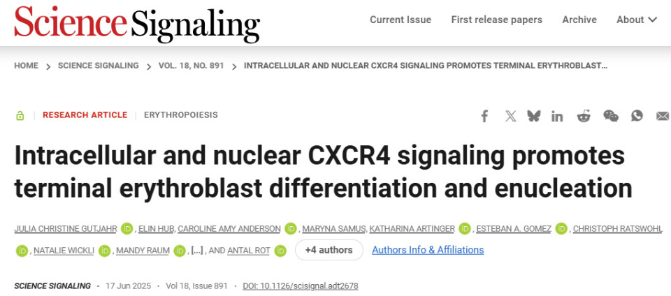 Julia Christine Gutjahr et al. ,Intracellular and nuclear CXCR4 signaling promotes terminal erythroblast differentiation and enucleation.Sci.Signal.18,eadt2678(2025).DOI:10.1126/scisignal.adt2678