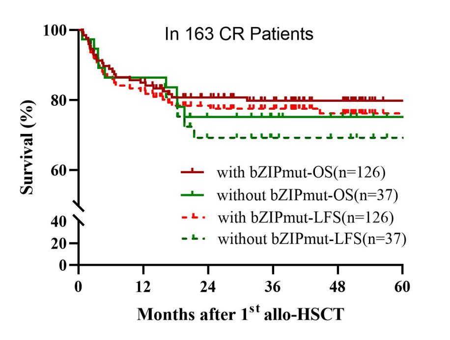 图2. bZIP结构域受累对163例CR患者预后的影响