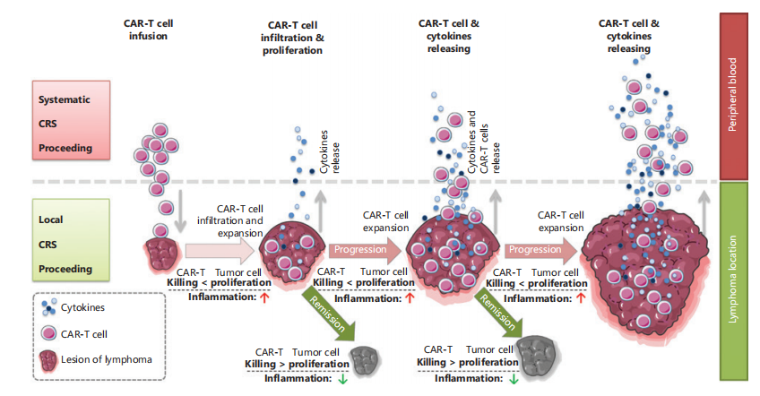 靶向CD19的CAR-T是R/R B-NHL的重要选择,客观缓解率可达60%-90%。为应对抗原逃逸和持久性不足,双靶点CAR-T及序贯输注不同靶点CAR-T的策略正在探索。中国团队研究表明,序贯CAR-T输注对难治性伯基特淋巴瘤(包括CNS受累及巨大肿块患者)能诱导高缓解率且安全性可控。