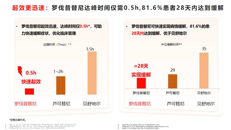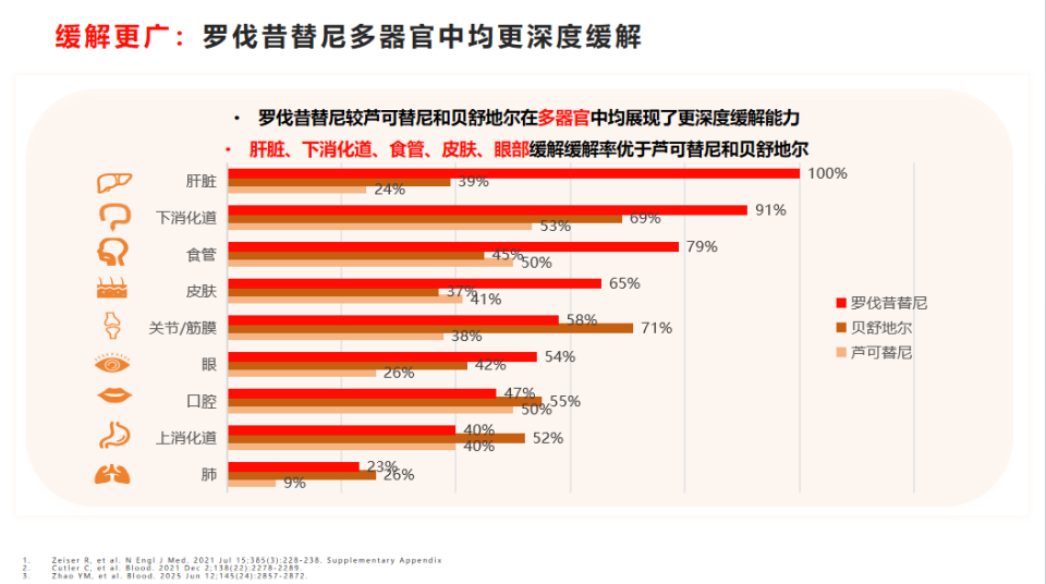 综上,罗伐昔替尼凭借独特机制,覆盖GVHD全程病理阶段,实现了快速起效、有效撤停激素、调节免疫平衡、增强GVL效应、广泛缓解受累及强效抗纤的综合疗效,且安全性良好,有望突破GVHD现有临床格局。