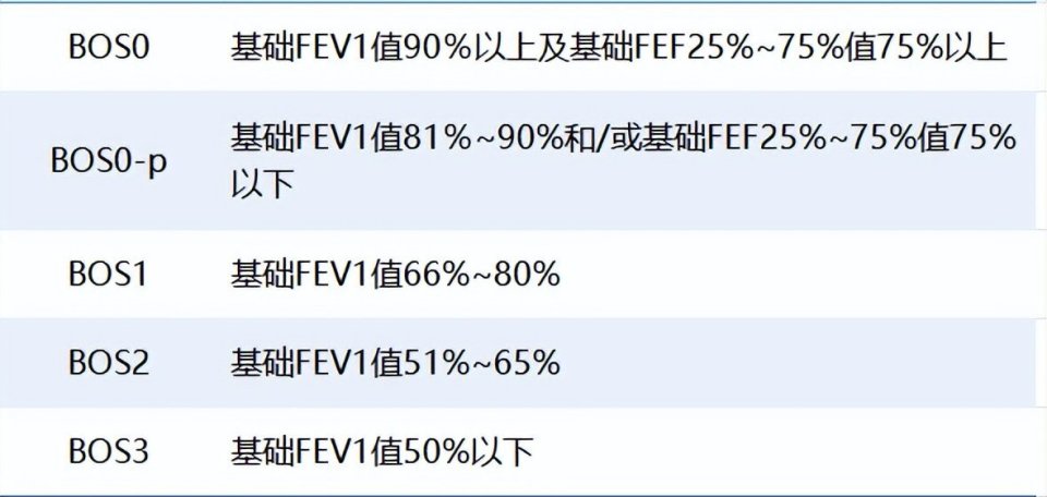 闭塞性细支气管炎综合征(BOS)作为常见的肺部cGVHD表现2,在allo-HSCT受者中发生率为3%~10%,在cGVHD患者中发病率约为14%,其病理特征为小气道管腔进行性不可逆的狭窄或闭塞,影像学上常见气体潴留、支气管扩张和支气管壁增厚3-4。早期风险因素包括使用外周血干细胞(PBSC)、移植后100天内发生下呼吸道感染以及第1秒用力呼气量(FEV1)下降10%5。