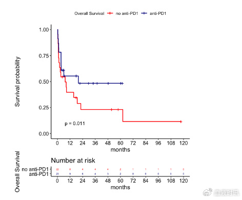 图1. 接受与未接受抗PD1治疗患者总生存(OS)对比