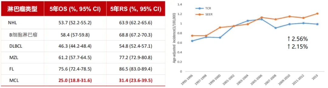 套细胞淋巴瘤(MCL):预后差的B-NHL,发病率稳态增长