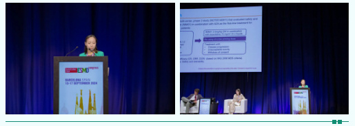 2024年欧洲内科肿瘤学会(ESMO)年会于9月13日~17日在西班牙巴塞罗那隆重召开,作为全球规模最大、学术水平最高、最具权威的临床肿瘤学会议之一,众多专家学者在ESMO会议上展示了肿瘤学领域的最新研究成果,共同推动肿瘤学科的全球发展。在血液肿瘤领域,本届ESMO也展现了诸多进展,其中不乏来自于中国的声音,浙江大学医学院附属第一医院佟红艳教授团队的一项研究入选大会口头报告,探讨了应用Timdarpacept (IMM01)联合阿扎胞苷(AZA)作为慢性粒-单核细胞白血病(CMML)一线治疗的研究结果(801 MO)。在ESMO会议现场,《肿瘤瞭望-血液时讯》有幸采访到了该团队成员,现场汇报专家马丽亚教授,围绕本研究的相关内容进行了精彩讲解。