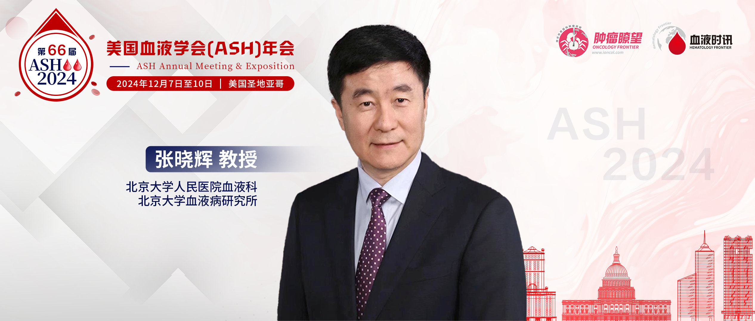 2024年第66届美国血液学会(ASH)年会将于12月7~10日在美国圣迭戈(San Diego)盛大召开。作为全球血液学领域规模最大、涵盖最全面的国际学术盛会之一,每年吸引着成千上万名来自世界各地的专家学者,分享最前沿的血液学进展和突破性临床数据。在本次大会上,北京大学人民医院血液科、北京大学血液病研究所张晓辉教授团队大放异彩,共有11项研究获选展示,其中3项更是入选口头报告(Oral),向全世界展示了中国血液学研究领域的卓越成就。本期带您提前领略这3项口头报告的研究内容,并邀您锁定报告时间,届时一睹中国专家的卓越风采,并深入了解这些研究开展的细节以及背后的动人故事。