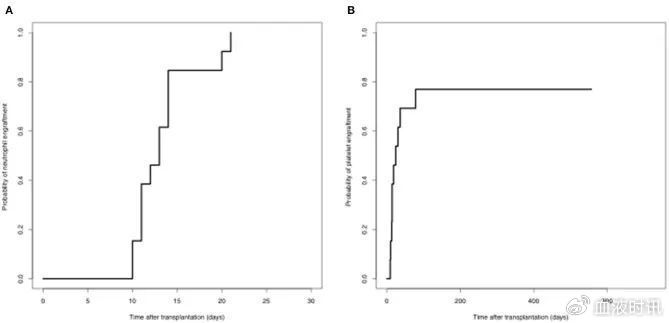 所有患者在二次移植后均实现了完全嵌合。二次移植后中性粒细胞植入成功的中位时间为13天(10~21天)。13例患者中有10例(76.9%)在最后随访时实现了血小板植入成功,中位时间为16天(9~78天)。