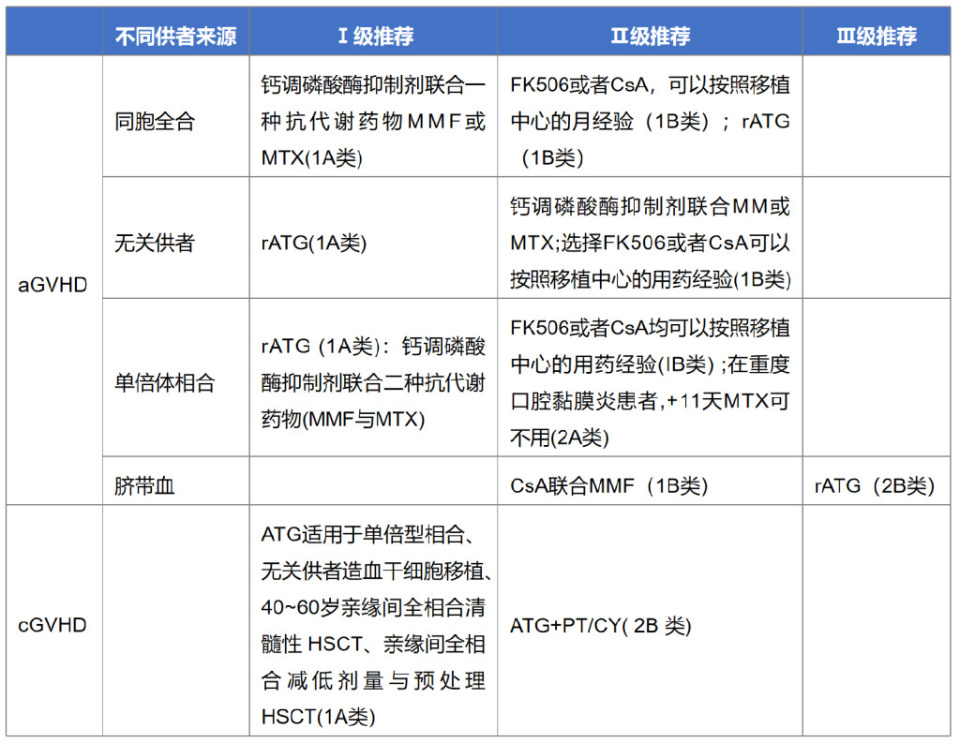 rATG作为预防aGVHD和cGVHD I级用药推荐,地位稳固