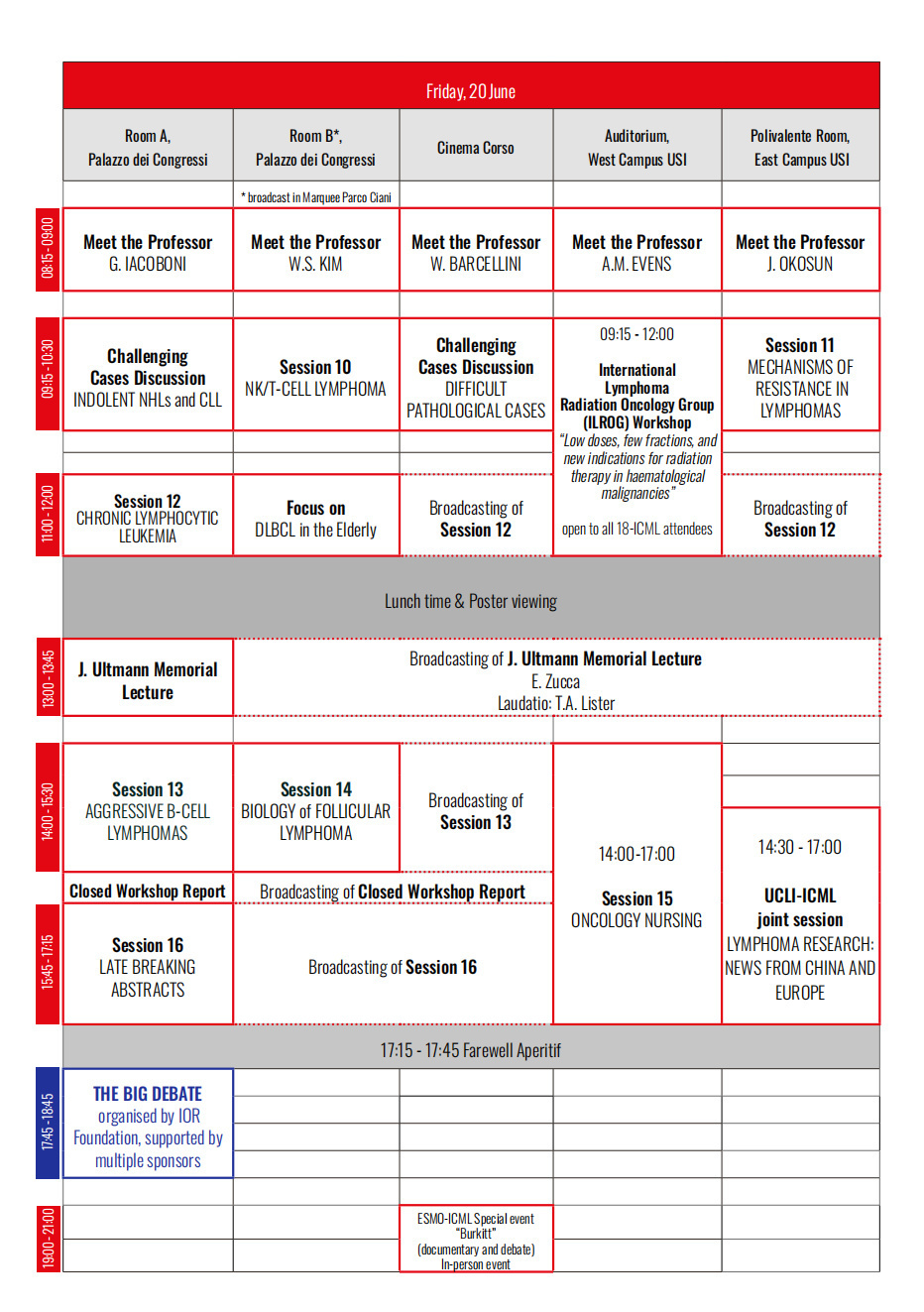 Henry Kaplan作为淋巴瘤研究与治疗领域的先锋,为ICML大会在卢加诺的举办作出了巨大贡献。Gianni Bonadonna则是霍奇金淋巴瘤标准疗法(ABVD)的开发者,这一疗法数十年来持续发挥着关键作用,并且他是最早提议举办专门讨论恶性淋巴瘤大会的三位肿瘤学家之一。John Ultmann在霍奇金淋巴瘤的精确分期及其治疗应用方面同样是一位开拓者,自ICML首届大会开始直至2000年逝世一直担任组委会委员。