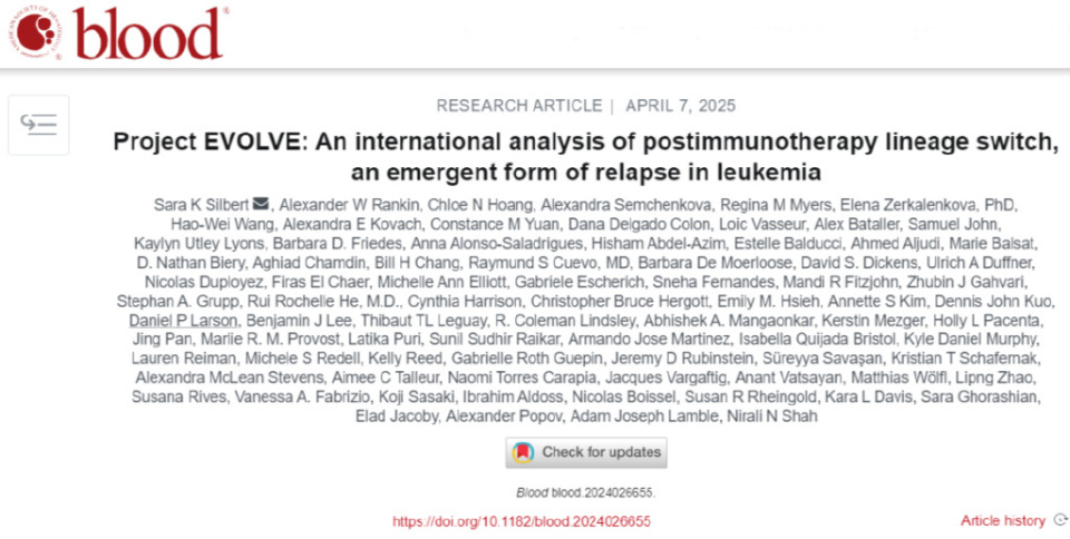 本中心作为国内唯一参与该项目的中国单位,入选是基于两方面优势:其一本中心与Shah教授团队建立了长期合作关系,具备国际认可的临床研究资质;其二,本中心具备在全球范围内规模较大的T淋巴母细胞白血病/淋巴瘤(T-ALL/LBL)病例库,且在CAR-T细胞治疗研究领域成果颇丰。在该研究中贡献了2例CD7 CAR-T治疗后的谱系转换病例,此类病例在全球范围极为稀缺,为全面解析谱系转换这一罕见现象提供了重要支持。