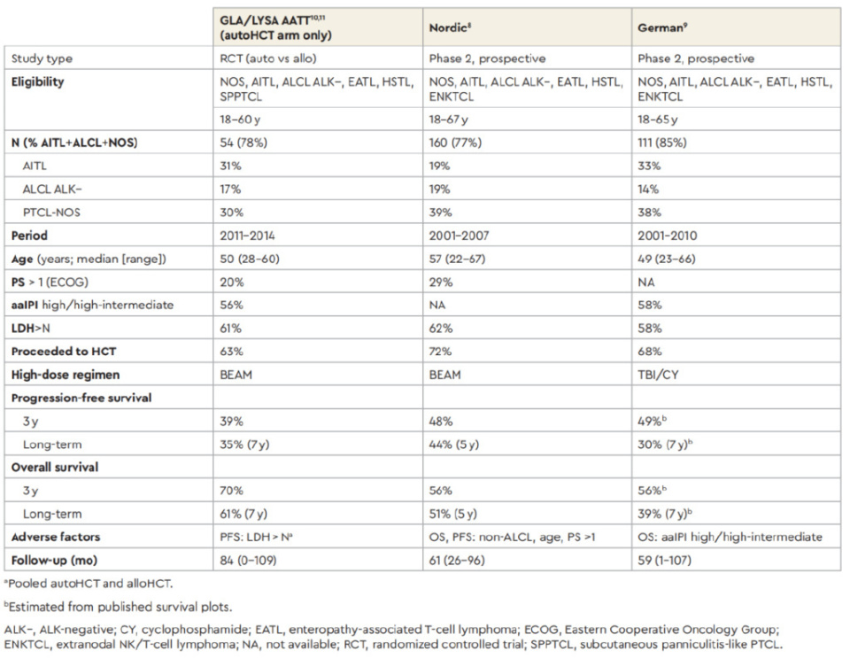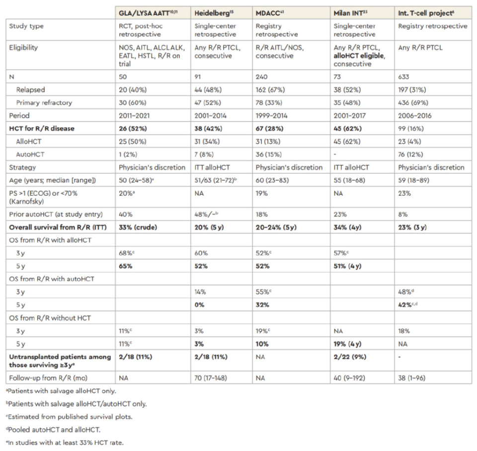 近期关于PTCL的较大规模alloHCT真实世界研究