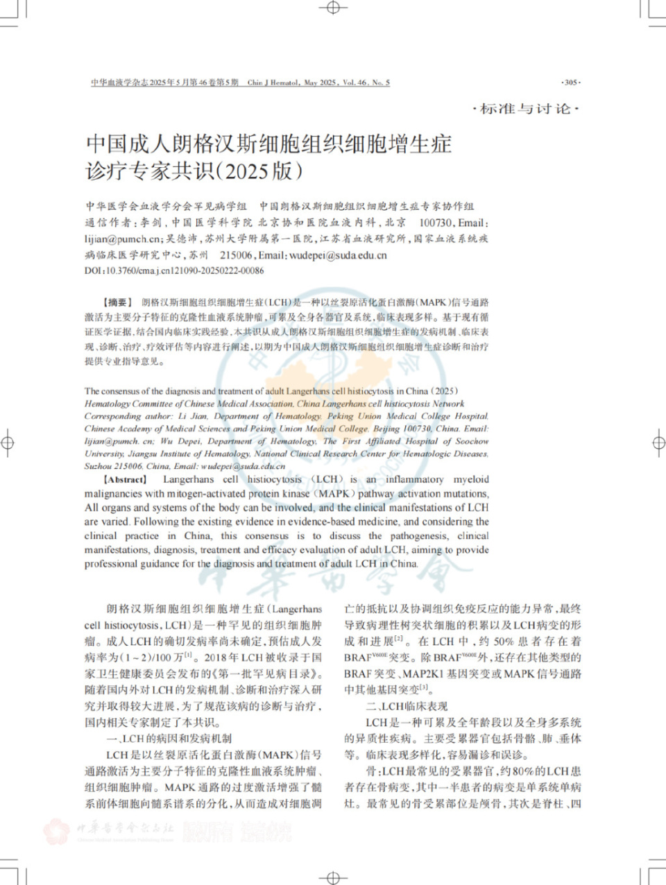 综上所述,LCH是一种由MAPK通路突变驱动的罕见组织细胞肿瘤,临床异质性强且易误诊。诊断需结合病理形态、免疫组化及分子检测,治疗策略应根据分型分层制定。随着靶向药物的发展,基于分子特征的精准治疗有望成为一线选择。疗效评价推荐采用PET-CT代谢标准以客观反映治疗反应。相信随着基础研究的深入及新型治疗手段的涌现,LCH的临床管理将迎来新的发展机遇。