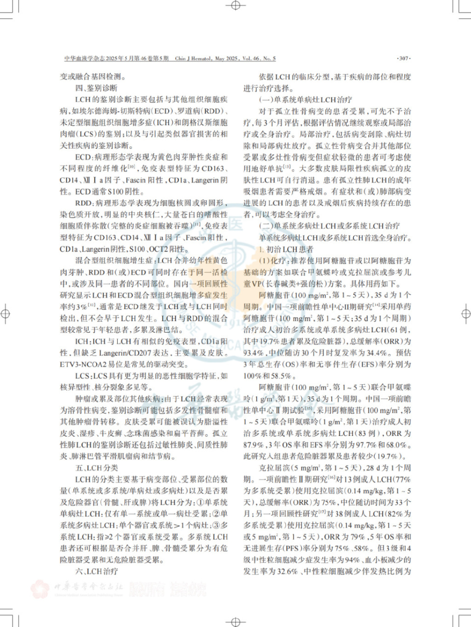 目前,成人LCH治疗面临多重困境,既缺乏标准化治疗方案,也鲜见前瞻性临床研究,多借鉴儿童LCH治疗经验,回顾性研究数据亦稀缺,且疗效评价无统一标准,增加了治疗效果评估难度。