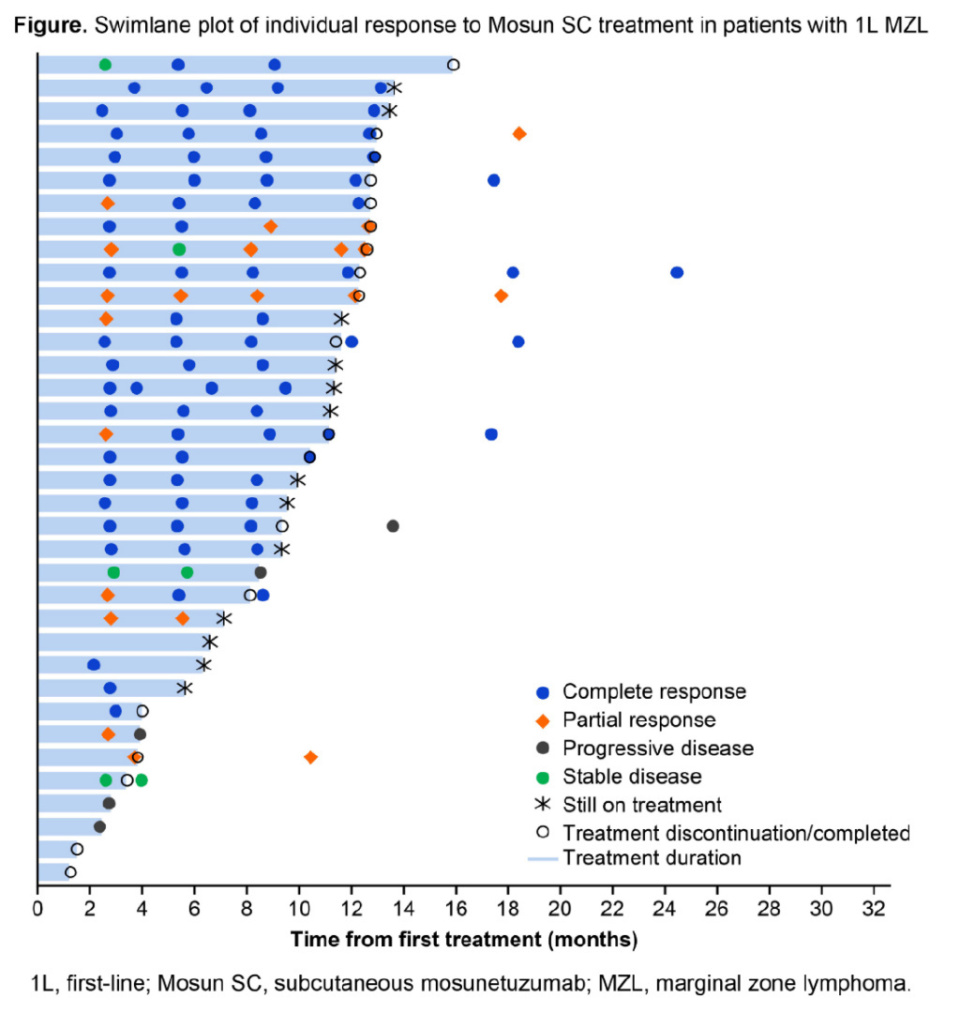 MZL患者对一线Mosun SC治疗反应的泳道图