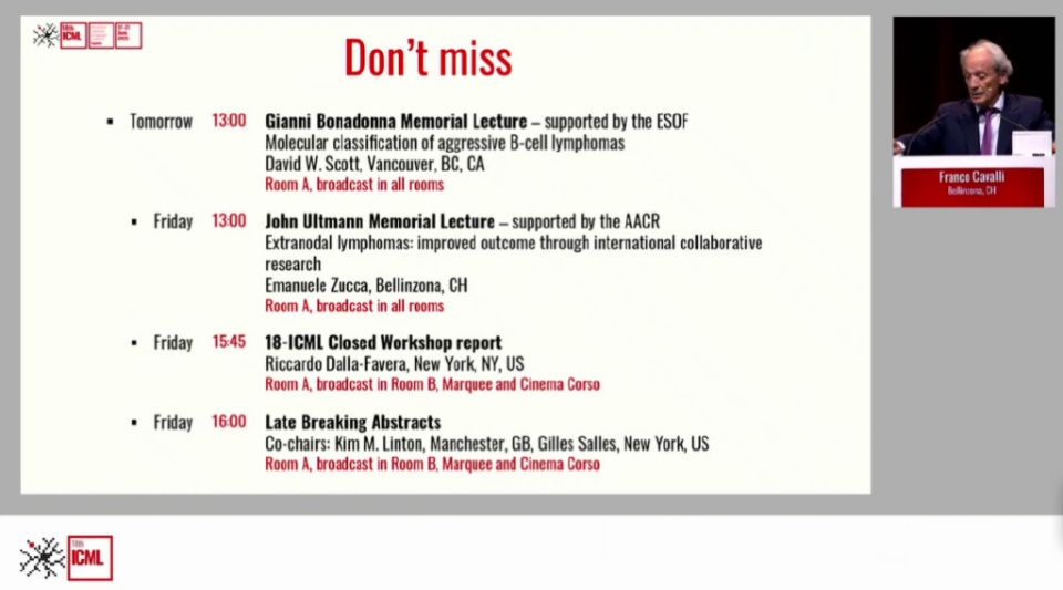 由瑞士肿瘤研究所基金会(IOR)主办的第18届国际恶性淋巴瘤会议(18-ICML)于2025年6月17日至21日在瑞士卢加诺盛大召开。作为全球血液肿瘤领域两年一度的顶级学术盛会,本届会议吸引了来自全球的千余名血液学家、临床肿瘤学家、放射肿瘤学家及基础研究学者齐聚一堂,围绕淋巴瘤疾病机制、转化医学进展及临床诊疗革新展开深度探讨。会议主席Franco Cavalli教授在开幕式发言中,以严谨而热忱的致辞拉开了学术盛宴的帷幕。《肿瘤瞭望-血液时讯》从现场发回报道,现将相关内容进行整理,以飨读者。