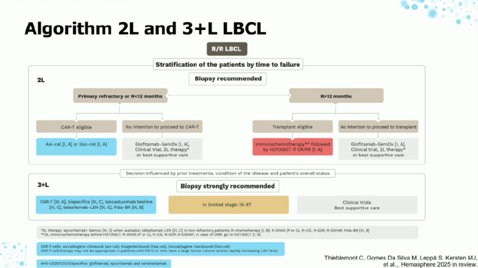 对于复发/难治性LBCL,指南根据复发时间点进行了明确的治疗路径划分。