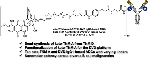 前言:抗体药物偶联物(ADCs)是一类先进的癌症治疗药物,通过化学连接子将抗体介导的递送系统与细胞毒性载药相结合。蒽醌稠合烯二炔类化合物(AFE)天然产物是新兴的载药候选物,具有极强的活性,且其DNA损伤作用机制已得到验证。该研究阐述了如何将经半合成功能化修饰、并整合多种连接子化学结构的TNM转化为ADCs。其中,经优化的ADCs在多种表达CD79b的细胞系中均表现出强效且特异的活性,更重要的是,在患者来源的慢性淋巴细胞白血病细胞中也呈现出该活性,有望为开发下一代免疫治疗药物奠定了基础。