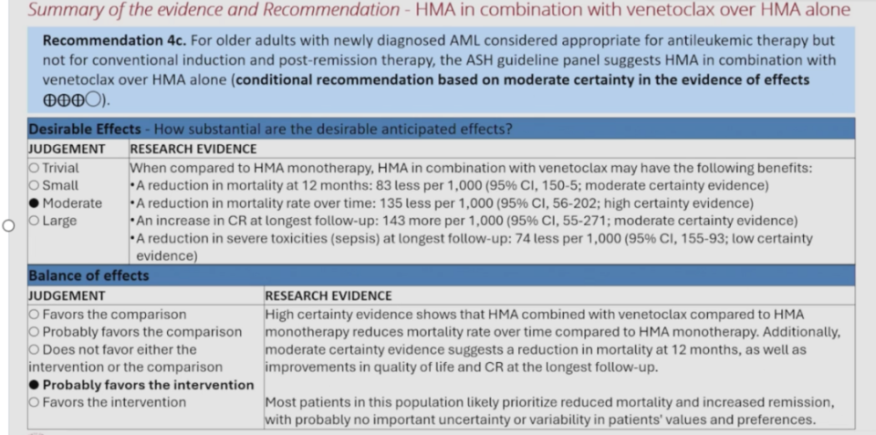 Professor Huafeng Wang:For elderly AML patients who are unfit for intensive treatment, does the current guideline still recommend the combination of Venetoclax and Azacitidine?